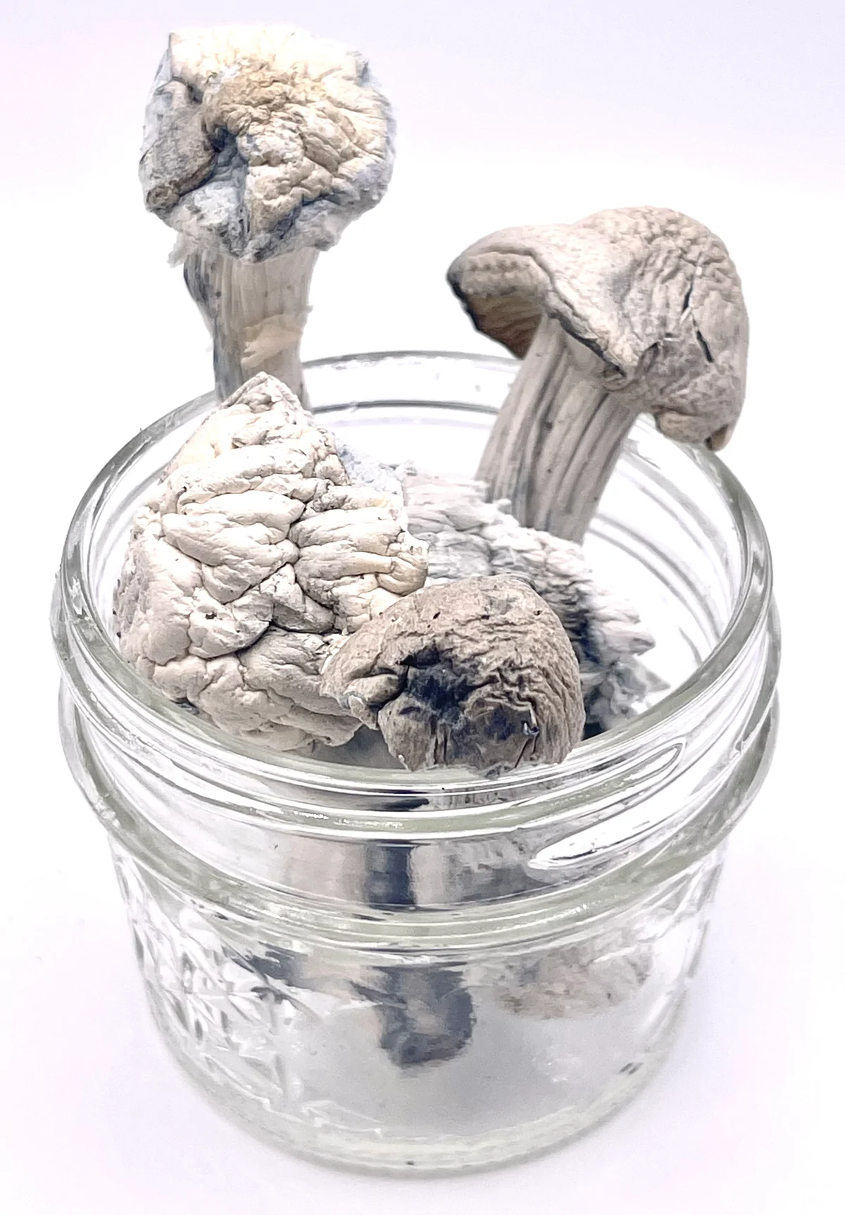 These mushrooms have a beautiful blend of white mixed with blue and black hues. Their stems are generally thicker in size like the original Penis Envy but more stout.